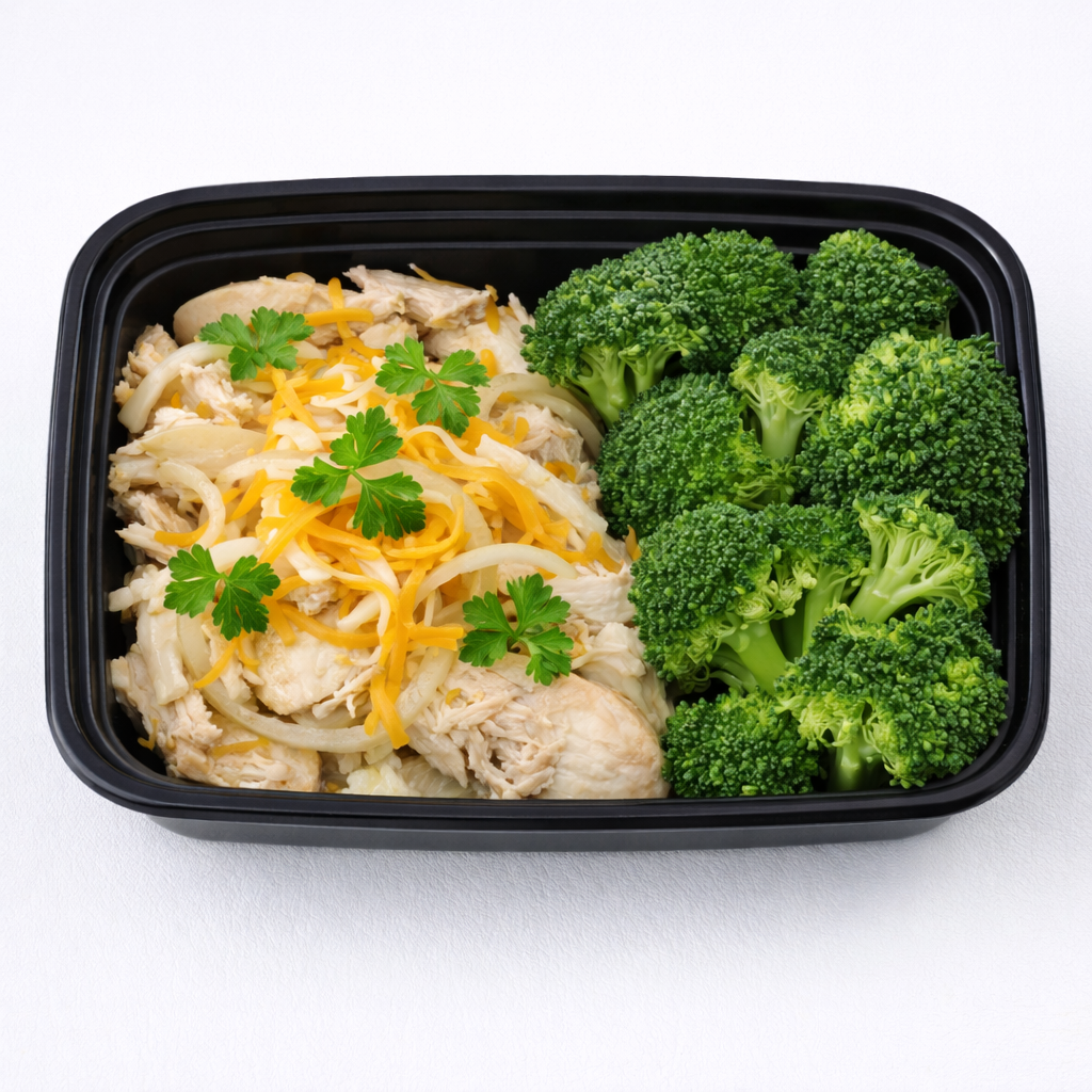 Pechuga desmenuzada encebollada